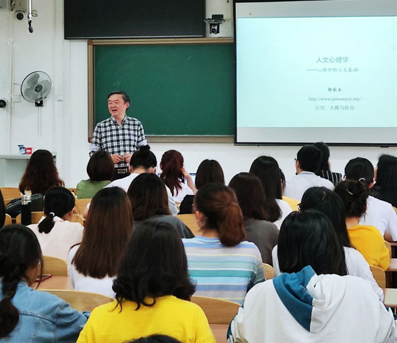 为了提升心理学专业学生的科研素养和学术研究能力,广西师范大学教育学部邀请到著名心理学家郭永玉教授作题为“人文心理学——心理学的人文基础”的学术讲座,讲座于2021年4月24日下午14:30在我校雁山校区理科楼501举行,心理系的教师与学生们积极响应,踊跃参加。