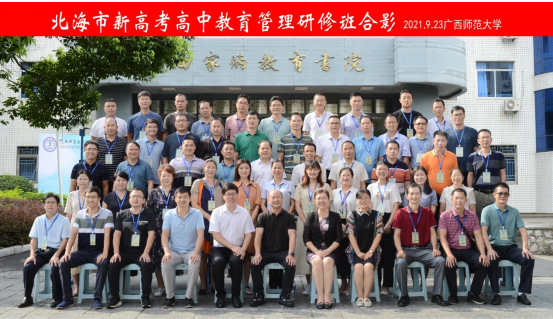 2021年9月23日至29日,“北海市新高考高中教育管理培训班”在桂林戴斯酒店顺利开展。本次培训共持续7天,参训学员共50名,由广西师范大学教育学部作为专业支撑单位负责承办,主要目标是帮助参训学员把握新高考动态与普通高中教育新常态,切实提升学员们在新高考课程实施与改革、学生发展指导等专业能力,提高教师专业化发展及人文素养,使学校适应社会变革,使北海市高中教育符合新时代高中育人要求。