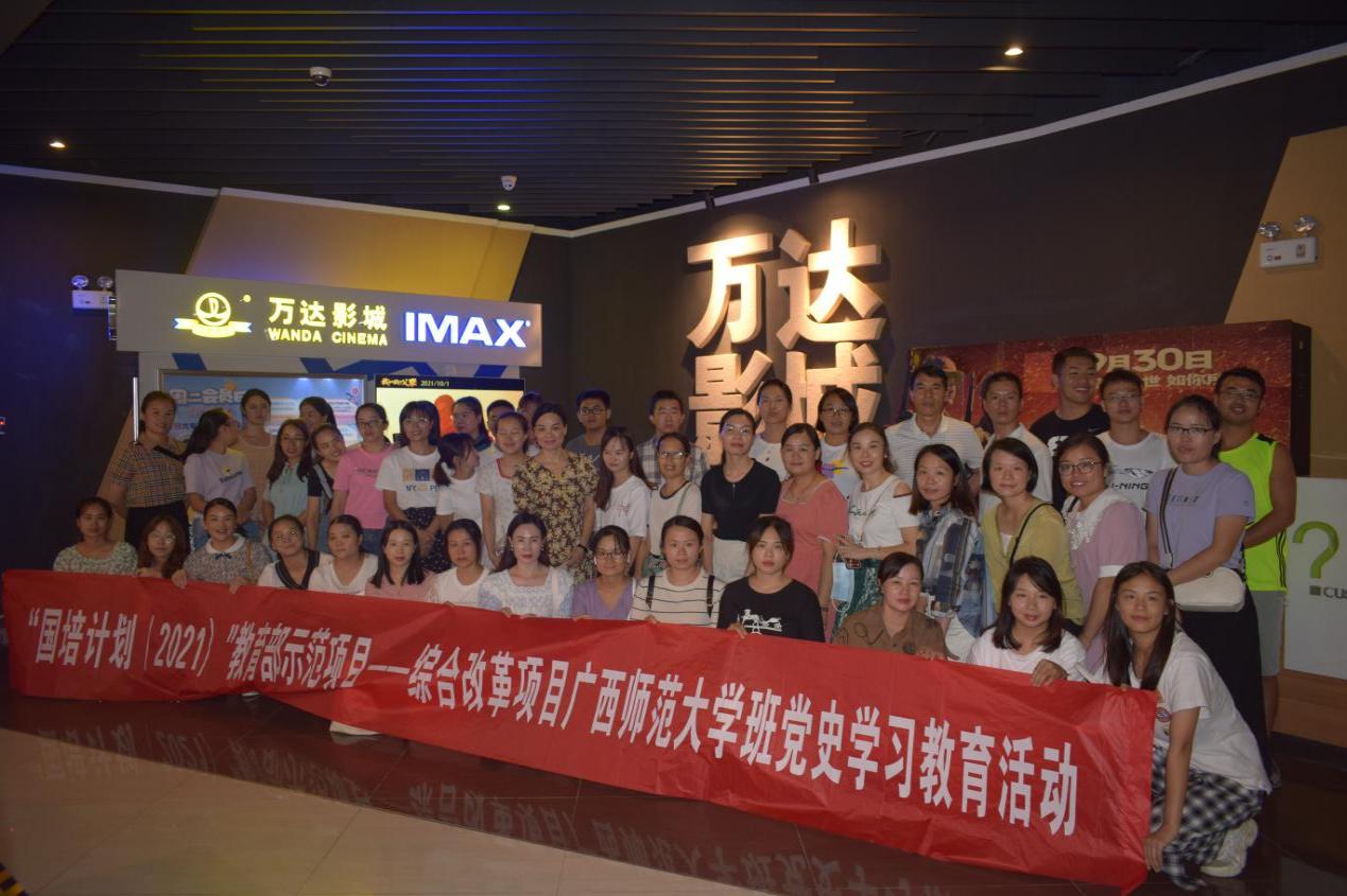 来自国内的高校学者和一线专家分别为学员作了9场专题讲座,涵盖理论和实践,有讲授、互动、研讨、答疑多种教学形式,涉及习近平总书记关于教育的重要论述、小学在线教学设计的理论与实践、地域文化如何融入课程、以学习理论促进学生发展、教师发展、教研团队建设、学科教研活动、课堂教学能力提升等内容,聚焦于学员在“教学设计、教学管理、教育信息化能力”三方面的提升,促进学员对学科内容与教育价值的理解。在实践学习上,则有入校实地参观考察、学员沙龙交流和参与式讲座探讨,学员们分别走进广西师范大学附属小学、龙隐小学进行体悟学习,实地参观名师工作坊,学习到如何建立工作坊以及开展工作坊活动,将理论学习与教学实践紧密结合,深入巩固学习成果。正值中国共产党建党100周年,本次研修将还党史学习教育与教师专业成长相结合,在党的全面领导下聚焦学科素养与科研素养的深化与提升。在广西师范大学社会服务事业部的组织下,学员们通过集体观影《1950他们正年轻》,不忘为党立德树人初心,牢记为国育人使命。
