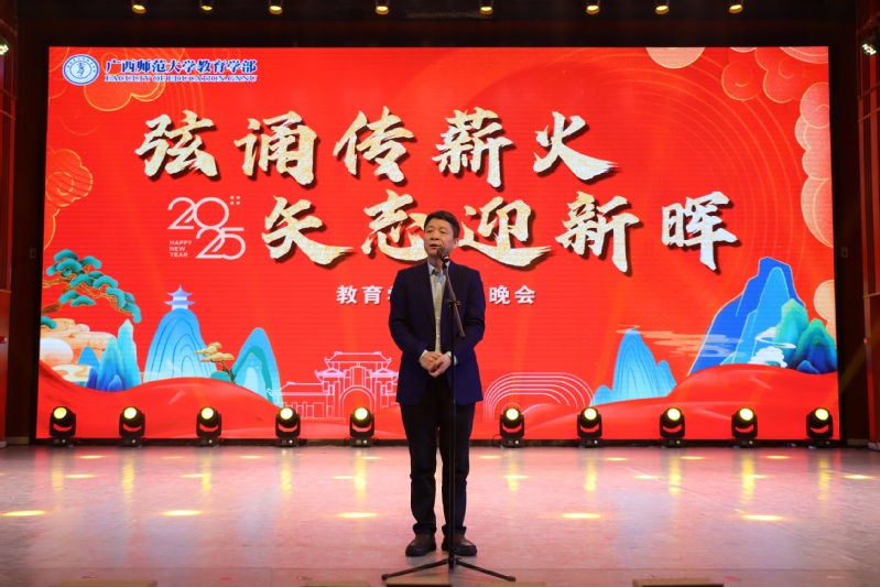 祥龙辞岁福泽长,瑞蛇迎新岁安康。12月30日晚,教育学部2025年“弦诵传薪火,矢志迎新晖”新年晚会在雁山校区音乐学院三楼综合厅顺利举行。校党委副书记、校长兼教育学部部长孙杰远教授,学校部分党政群团部门、二级学院相关负责人作为嘉宾出席,教育学部五百余名本硕博师生代表齐聚一堂,共赴嘉会。