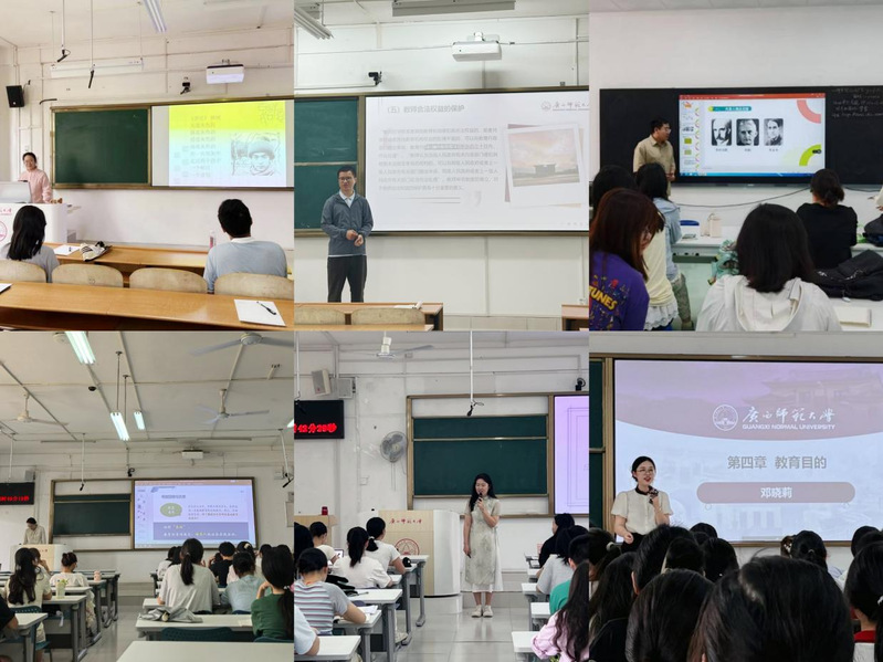 活动中,6位教师分别呈现了《教育政策与法规》《学与教的心理学》《学前教育心理学》《教育学(公共)》《国内外基础教育改革》及《教育学》等专业课程的精彩课堂。青年教师们坚持教研结合、教学相长,能够精准把握课程核心概念与教学重难点,充分运用案例对比深化学生的理论认知,创新采用问题链引导+多模态教学模式,结合视频案例分析、小组辩论等多元互动形式,有效激发学生课堂参与的热情,展现出了扎实的学术功底和过硬的教学能力。