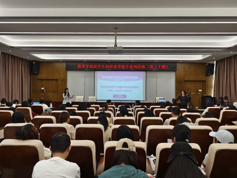 为全面提升研究生培养质量,进一步拓宽学术视野,激发学术创新活力,5月11日上午,教育学部第30期研究生科研素养提升讲座在雁山校区起文楼第五会议室举行,特邀东北师范大学尹爱青教授,围绕“国际比较视野下中国教师美育发展研究”主题,为学部师生带来了一场兼具理论深度与实践价值的思维盛宴。本次讲座由教育学部闫若婻教授主持。