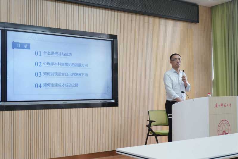 2025年5月18日,广西师范大学第五届心理学“独秀”创新讲堂顺利开讲。西南大学心理学部夏凌翔教授应邀作客本科生专场,以漫谈心理学本科生的成才成功之道为题,为教育学部2024级应用心理学拔尖基地班及2023级应用心理学专业全体学生带来一场思想盛宴。本次讲座由教育学部权方英老师主持,林爽老师作总结点评。
