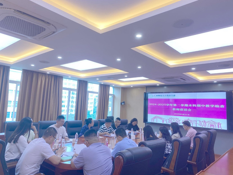 5月21日教育学部召开2024-2025学年第二学期本科期中教学检查教师座谈会。各专业系主任、系副主任、教研室主任及本科教学办成员参会,会议由学部副部长熊西蓓副主持。