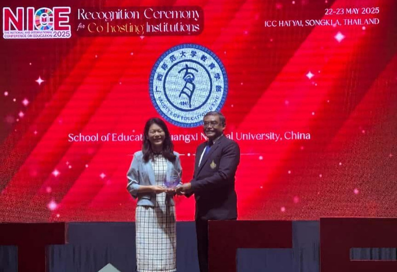 广西师范大学教育学部始终秉持“以本科生和研究生教育为主体,学科建设和社会服务为两翼”的发展理念,积极开展国际及区域间交流合作,通过搭建跨国学术合作平台、创新专业培养体系,持续提升学科国际影响力。2025年5月22-23日,广西师范大学教育学部师生代表团赴泰国合艾市,参与第十一届泰国暨第七届国际教育会议(NICE 2025)及首届国际卓越教学奖(ITEA 2025)竞赛。本次活动由泰国宋卡王子大学教育学院主办,吸引了来自澳大利亚、马来西亚、印度尼西亚等多个国家和地区的教育学者与院校代表参与。