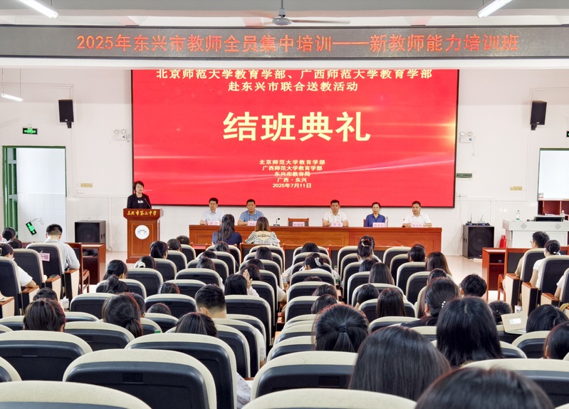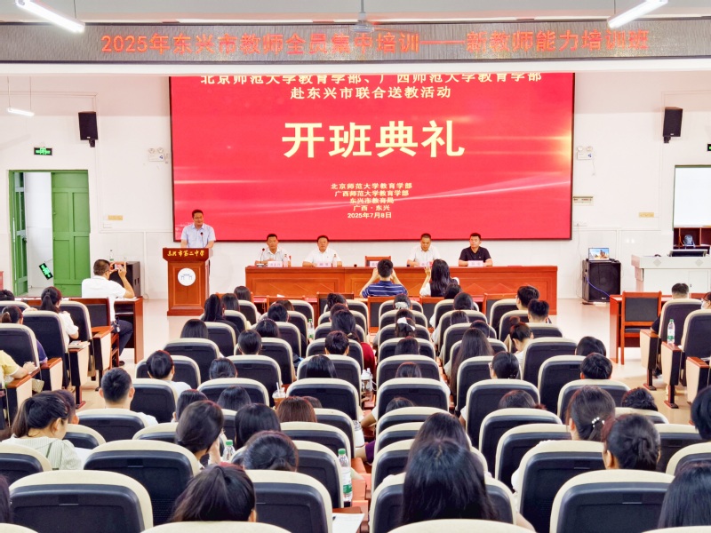 本次“教育援边”行动由广西师范大学教育学部党委与北京师范大学教育学部党委联合主办,东兴市教育局承办。作为两校连续九年“教育援边”的延续,活动始终紧扣党中央“立德树人”根本任务,旨在通过高校智力资源与地方教育需求的精准对接,提升边疆教师队伍的核心素养,助力教育阻断贫困代际传递。活动获得两校及东兴市教育局的大力支持,东兴市教育局局长黄文铭,东兴市教育局副局长洪永兴,广西师范大学教育学部党委书记蓝廖国,北京师范大学教育学部党委副书记阚维,广西师范大学教育学部常务副部长叶蓓蓓、广西师范大学教育学部党委副书记苏宝等先后出席了联合送教开班仪式和结班典礼。