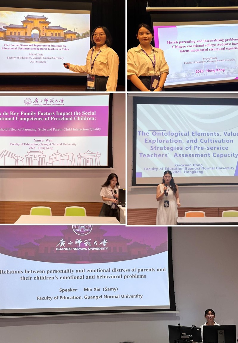 教育学部博士生董晓璇、文彦茹、谢敏、黄雅晴和江敏锐还在不同分会场就职前教师评估能力、学龄前儿童社会情感能力、父母人格与子女情感行为关联、职业学院学生内部化问题、中国乡村教师教育情怀等研究主题进行学术报告,与来自世界各地的学者进行热烈交流与深入探讨。学部师生代表顺利参加此次学术交流活动,进一步拓展了国际视野,为下一步深化我校与香港教育大学的交流与合作奠定了基础。(图文/董晓璇 审核/ 蓝廖国 熊西蓓)