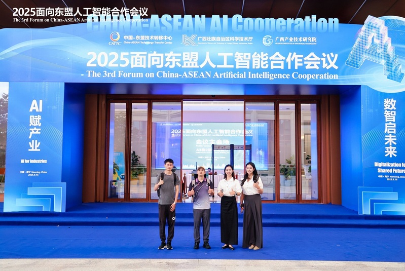 9月16日,广西师范大学教育学部教育技术学系教师及2026届毕业班辅导员代表受邀赴南宁市参加“AI赋产业,数智启未来”为主题的2025面向东盟人工智能合作会议,并走访了校友企业。本次会议由中国—东盟技术转移中心、广西科学技术厅、广西产业技术研究院联合主办,会议聚焦人工智能协同创新与产业赋能核心议题,吸引了中国与东盟国家政产学研界超千名代表参会。
