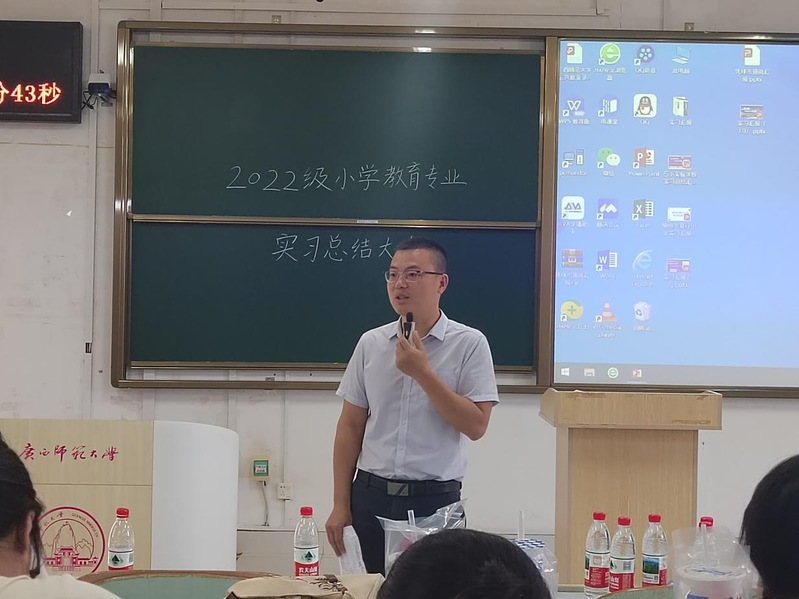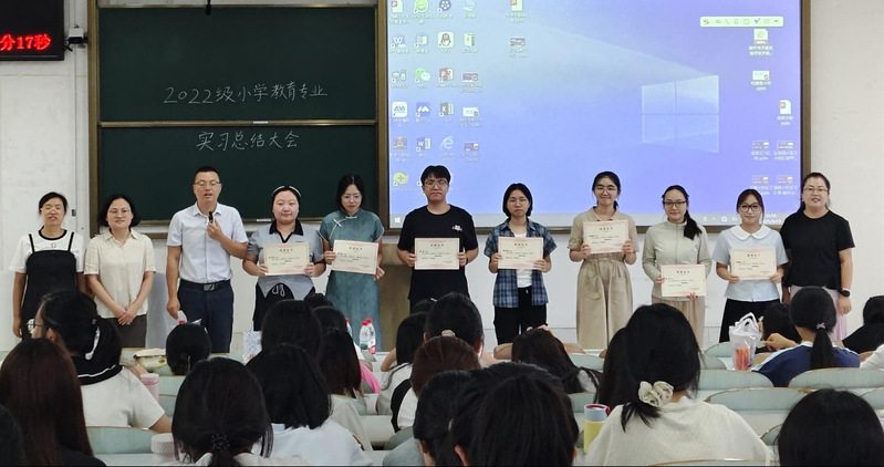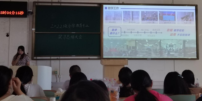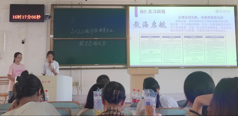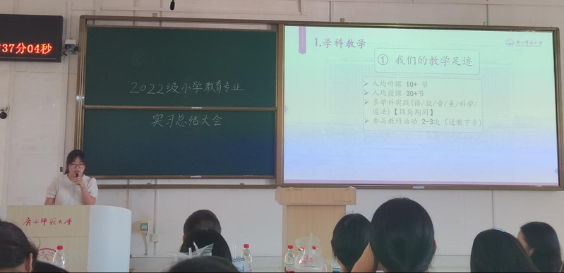 2025年9月12日下午,广西师范大学教育学部在文四305教室举行2022级小学教育专业实习总结大会。22级全体实习生、实习生导师、23级小教专业学生及学部领导齐聚一堂,通过小组汇报、成果展示与表彰仪式,全面总结为期18周的教育实习成果。