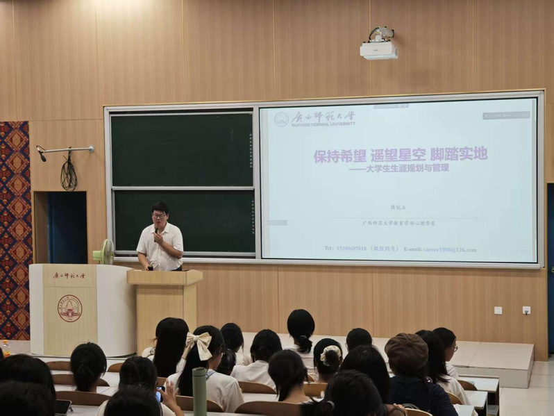 9月17日下午和9月19日晚,教育学部本科教务办于雁山校区,分别精心组织了“本科新生导学+职业生涯规划”融合课程大讲堂。学部2025级全体本科新生分两批参与了本次学习。本次课程由教育学部心理学系陈宛玉副教授主讲,与传统新生导学模式不同,此次课程将新生导学与职业生涯规划相融合,以“前置化、一体化”思路,为新生搭建学业与职业衔接桥梁。