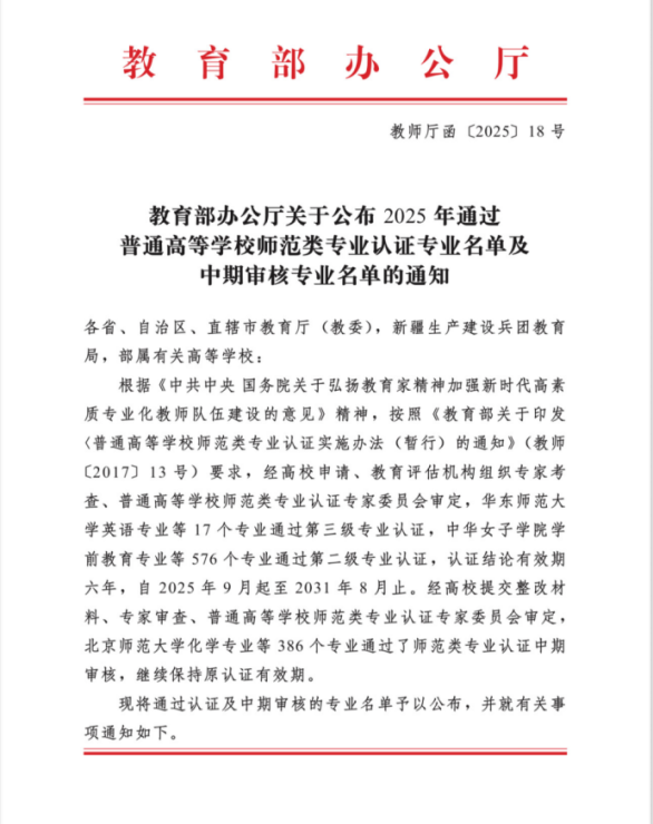 日前,根据教育部办公厅颁布的《关于公布2025年通过普通高等学校师范类专业认证专业名单及中期审核专业名单的通知》,广西师范大学教育学部应用心理学专业通过了第二级专业认证。