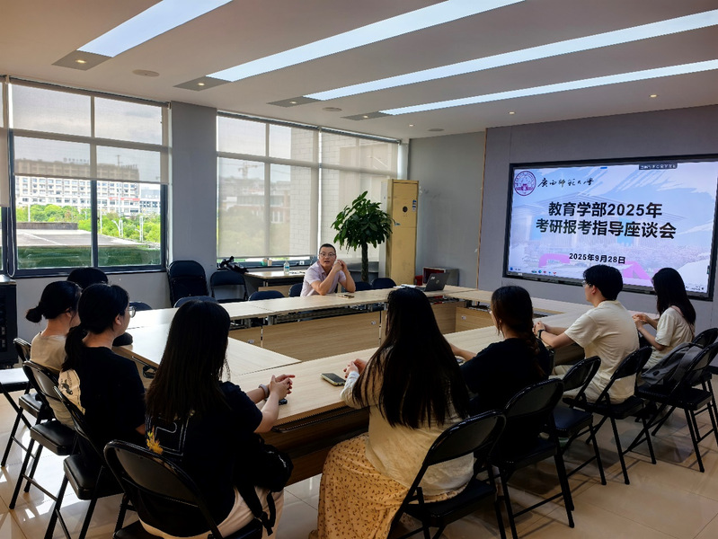 为充分调动教育学部2026届毕业生考研积极性、帮助考研学生科学报考、树立信心,教育学部于9月28日在雁山校区举行2026届毕业生考研报考指导座谈会。本次座谈会以专业为单位分别进行,各专业均邀请经验丰富的指导老师担任主讲,为同学们带来了内容翔实、针对性强的专题指导。