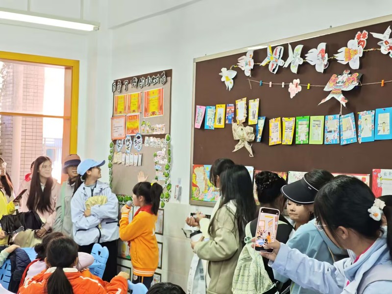 为帮助小学教育专业学生近距离了解小学教育实践场景,深度体悟专业内涵,强化专业认同感与职业归属感,2025年11月21日下午,广西师范大学教育学部小学教育专业和教育学专业近 200 名学生赴桂林市金雁学校,开展以“校园文化建设与班级管理”为主题的现场考察实践活动。本次活动由教育学系教师皇甫科杰带队,桂林市金雁学校主任唐玉涵、教师赵健威全程陪同参观并主讲微讲座。