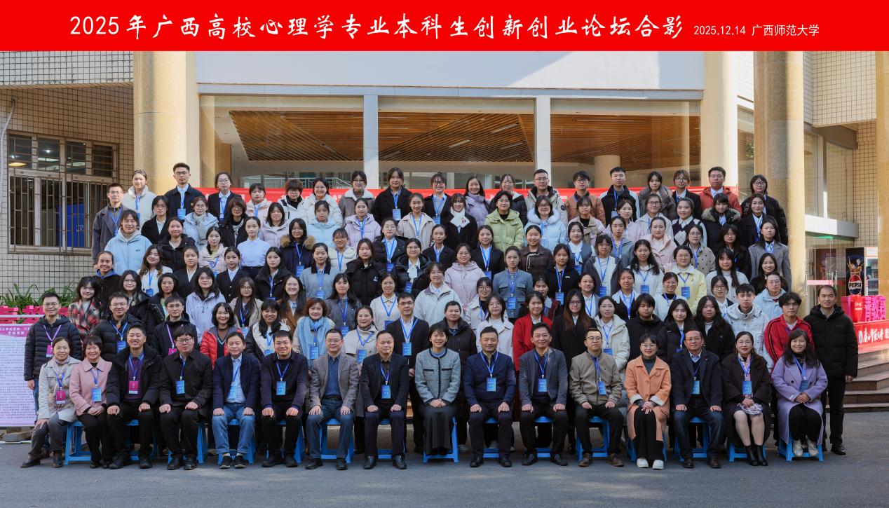 2025年12月14日,以“创新引领发展,担当回应需求”为主题的广西高校心理学专业本科生创新创业论坛在广西师范大学育才校区成功举行。本次论坛由广西心理学会、广西壮族自治区教育厅广西本科高校心理学类教学指导委员会主办,广西师范大学教育学部心理学系、心理学拔尖学生培养基地、广西认知科学与心理健康重点实验室共同承办。