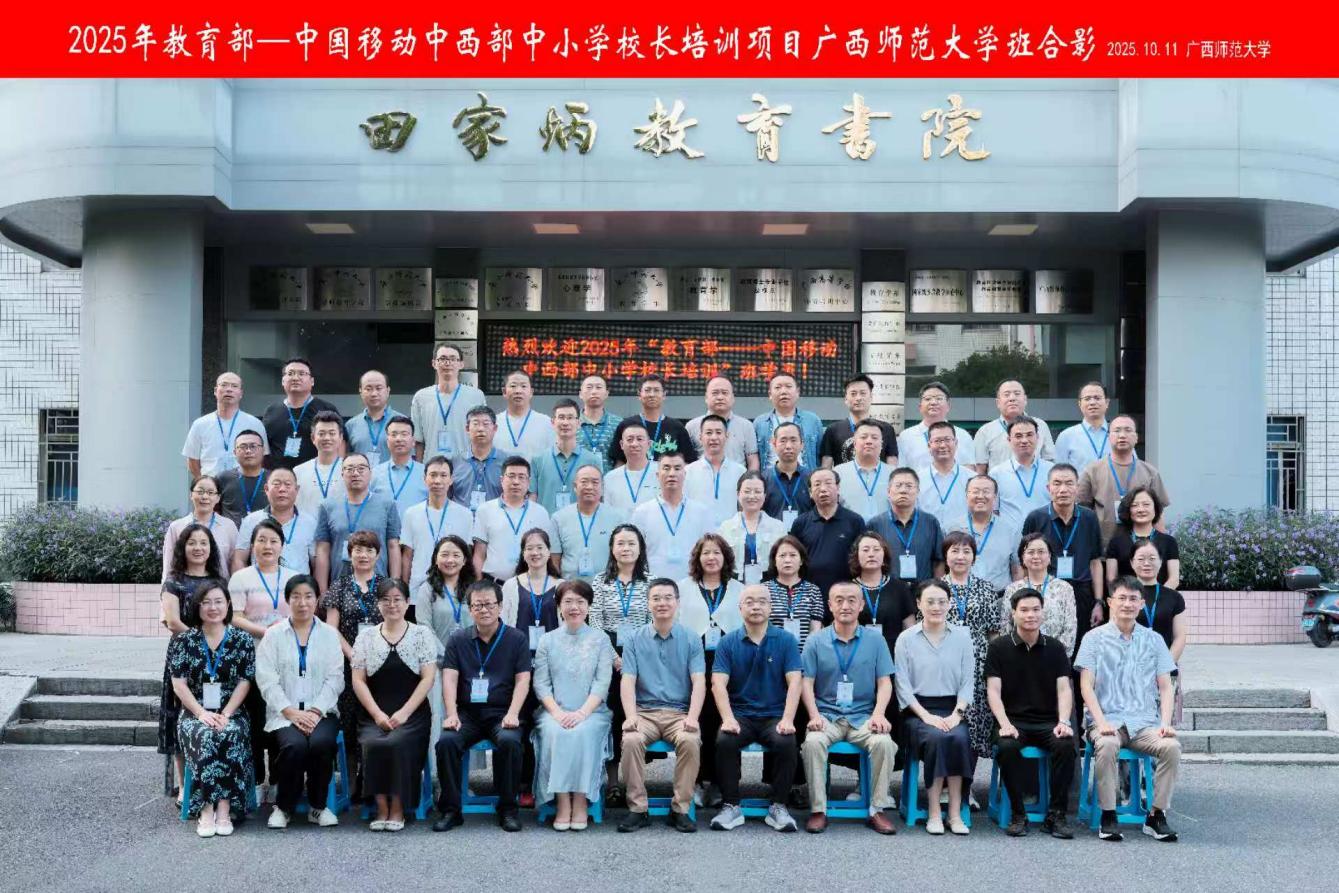 2025年10月10日至20日,2025年教育部—中国移动中西部中小学校长培训项目广西师范大学班集中研修在育才校区顺利开展。来自宁夏的54位中小学校长齐聚桂林,通过专题授课、影子培训、学员沙龙等多元形式,深入学习数智化教育知识与实践经验,为后续推动学校数字化转型奠定坚实基础。