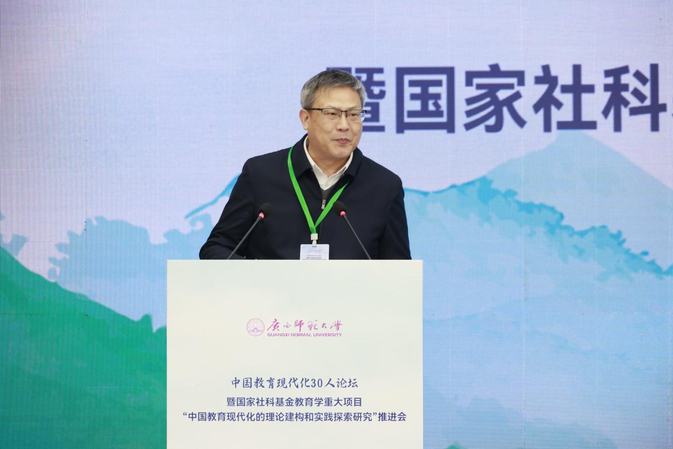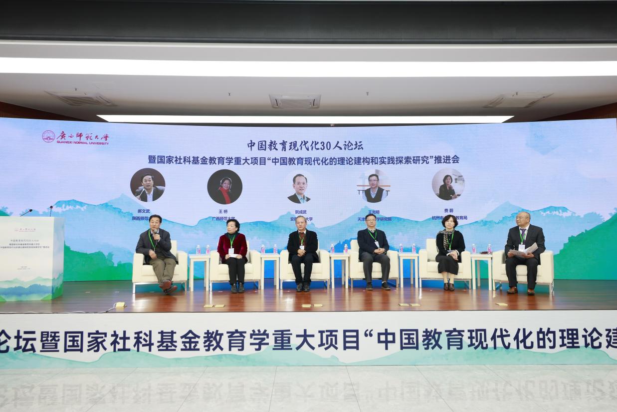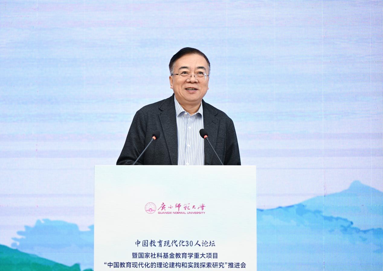 为深入贯彻落实国家教育现代化战略部署,深化中国教育现代化理论建构与实践探索,凝聚学界智慧,推动教育强国建设,2026年1月8日至11日,由广西师范大学主办的“中国教育现代化30人论坛暨国家社科基金教育学重大项目‘中国教育现代化的理论建构和实践探索研究’推进会”在桂林举行。