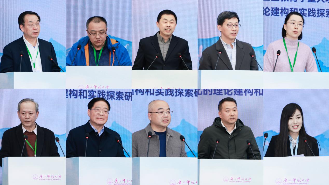 1月9日下午,会议专门举办了“教育现代化试验区、试验校圆桌论坛”,由广西师范大学刘远杰副部长主持。广西师范大学杨小微教授详细解读了教育现代化指标体系并对交流研讨做了精彩总结。来自芜湖市繁昌区、杭州市上城区、乌海市、南宁市、桂林市、柳州市等地的教育行政部门有关负责人,上海市润阳路小学、浙江省教科院附属学校、合肥市第六中学、柳州职业技术大学、广西师范大学附属外国语学校、广西师范大学附属中学、桂林市金雁学校等校的校长、老师,分享了各地、各校在推进教育现代化过程中的区域经验、校本实践与未来规划。与会学者与一线教育工作者就教育现代化指标落地、课程教学改革、教师专业发展、数字化赋能等实际问题进行了深入交流研讨。