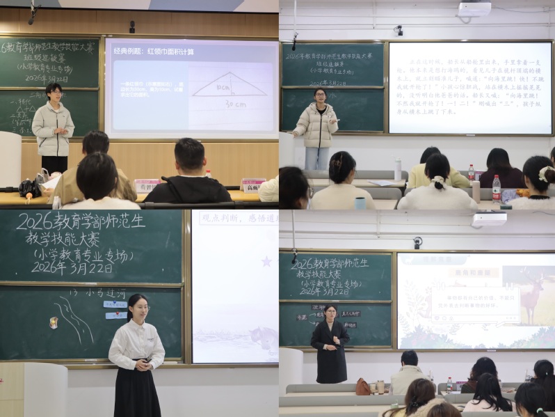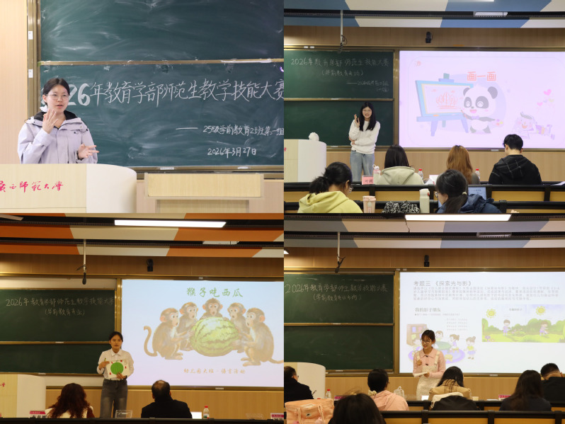 为深入落实新时代基础教育强师计划,锤炼师范生核心教学素养,搭建专业能力展示与交流平台,近日,教育学部在雁山校区文一区、文二区教学楼面向小学教育、教育技术学、学前教育三个专业举办2026年师范生教学技能大赛。本次赛事由教育学系、教育技术学系以及学前教育学系各系专任教师以及校外特邀教师担任比赛评委。