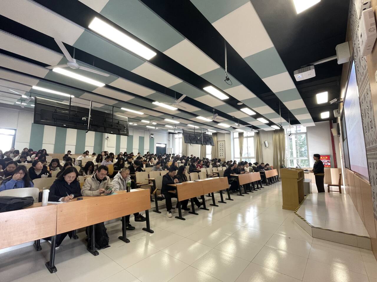紧接着,各实习带队教师代表依次发言,他们结合自身丰富的经验,围绕实习纪律、课堂教学、班级管理、家校沟通以及安全问题等方面的注意事项进行了细致地提醒,并耐心解答了同学们提出的疑问,帮助同学们做好充分的心理准备和知识储备。实习生代表何金兰同学也分享了自己对实习的憧憬与决心,表达了将以饱满的热情和积极的态度投入到教育实践中的坚定信念。