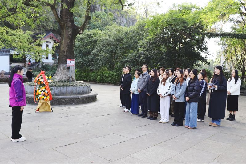 随后,教师代表结合桂林抗战史进行现场教学,以真实的历史片段激发全体党员的爱国情怀与责任担当。活动最后,大家缓步瞻仰烈士纪念碑,在静思中铭记历史。