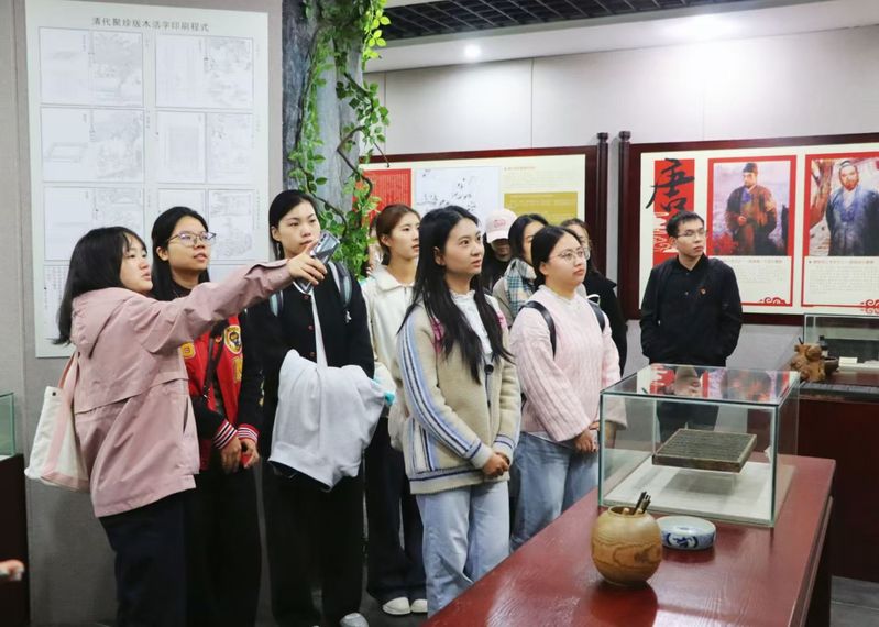 在王城博物馆,成员们跟随讲解员的介绍,参观了“独秀揽萃”“千年文脉”等展厅。一件件文物串联起广西教育的发展脉络,大家沉浸其中,触摸到的不仅是王城校区深厚的历史底蕴,更是作为“师大人”的精神归属感与文化自信。有学生感慨道:“来到这里,不只是欣赏展品,更是与历史展开一场跨越时空的对话。”让身为未来教育工作者的他们,对为党育人、为国育才使命,有了更为具体和深刻地认识。